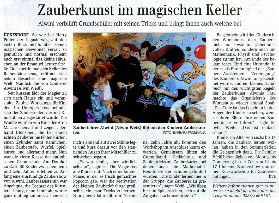 Generalanzeiger Bonn vom 07. Juli 2011 - Zauberkunst im magischen Keller